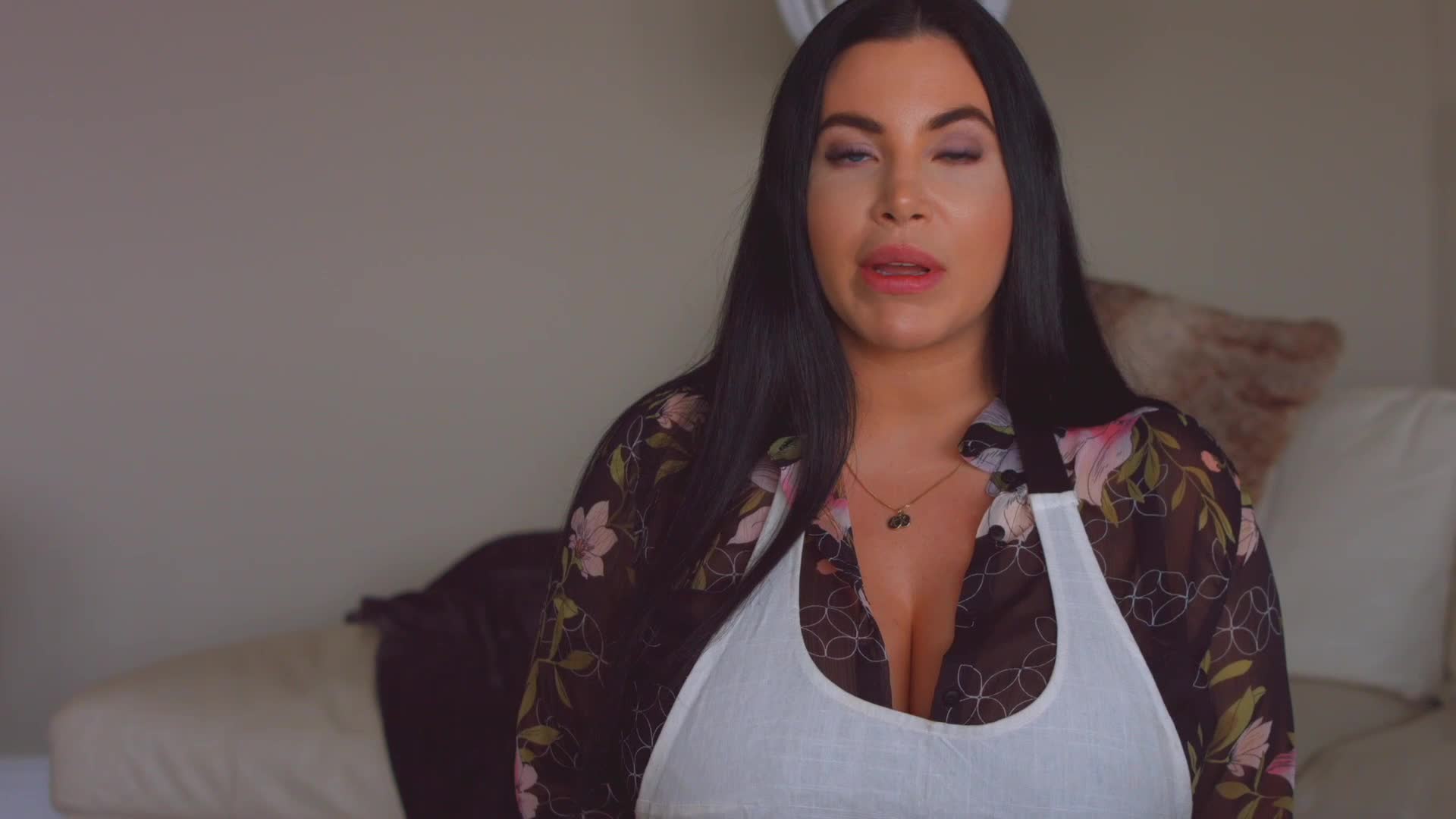 Korina Kova roleplays as Mother she goes topless and she gives some Jerk off encouragement while her tits get fondle, squeeze, jiggly, pinched by some faceless hands ending in some fake cum/cumshot.